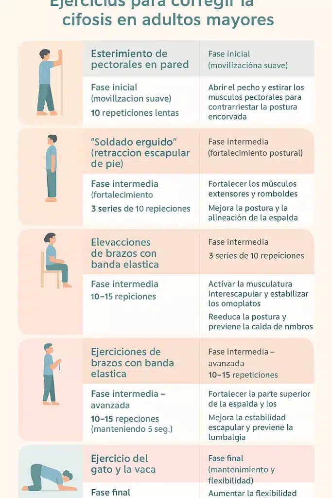 🧾 Tabla comparativa de ejercicios para corregir la cifosis en adultos mayores